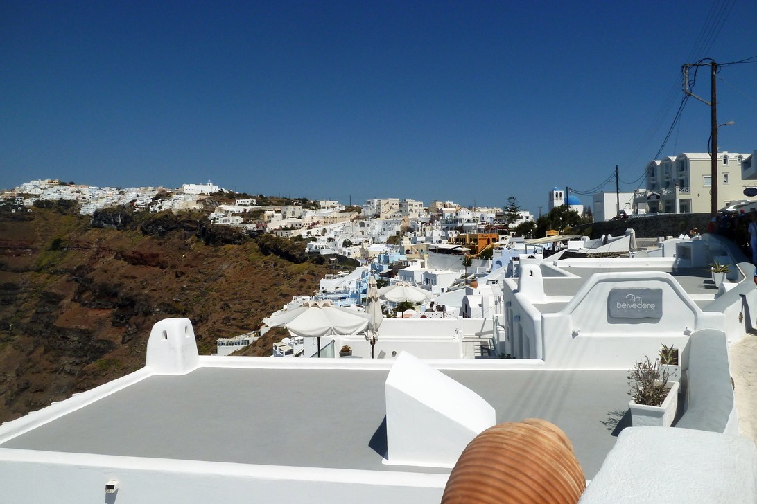 Hoch über der Ägäis an den Kraterrand geschmiegt sind die Orte für alle ein Bilderbuch-Fotomodel. Ein Motiv überstrahlt das nächste. Wir können uns immer noch nicht sattsehen, obwohl das bereits unser 5ter Besuch ist.