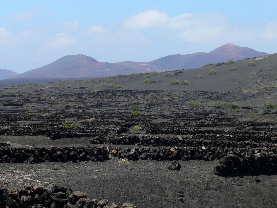 La Geria ist das große Weinanbaugebiet von Lanzarote. Der Wein wird auf spektakuläre Weise angebaut: Es werden kleine Mulden im dunklen, sandigen Vulkanboden ausgehoben. In jede Mulde wird ein Weinstock gepflanzt.