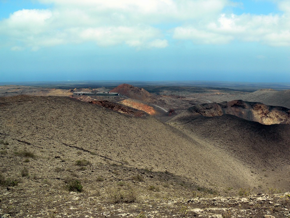 Der Timanfaya Nationalpark im Südwesten der Insel erstreckt sich über 51,07 km², von der Ortsgrenze Yaizas bis zum Montaña Timanfaya, die Westgrenze bildet die Küstenlinie. Hier entstanden damals 32 Vulkankegel. Wir erlebten diesmal die Feuerberge bei Sonnenschein
