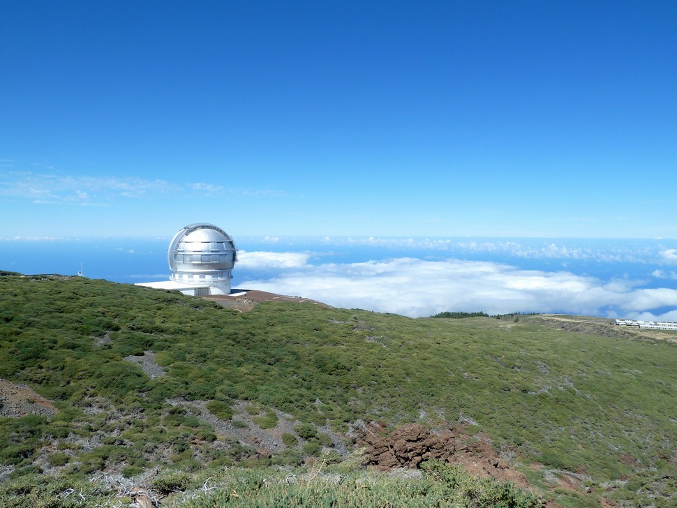 Gleich am ersten Tag fahren wir vorbei am Aussichtspunkt El Time und dem alten Drachenbaumund dem Observatorio Astrofisico zum höchsten Gipel der Insel. Die Vielzahl der Observatorien zeugt für die ideale Lage hoch über den Wolken. Gewaltig der Aublick über die Caldera de Taburiente.