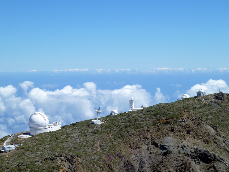 Gleich am ersten Tag fahren wir vorbei am Aussichtspunkt El Time und dem alten Drachenbaumund dem Observatorio Astrofisico zum höchsten Gipel der Insel. Die Vielzahl der Observatorien zeugt für die ideale Lage hoch über den Wolken. Gewaltig der Aublick über die Caldera de Taburiente.