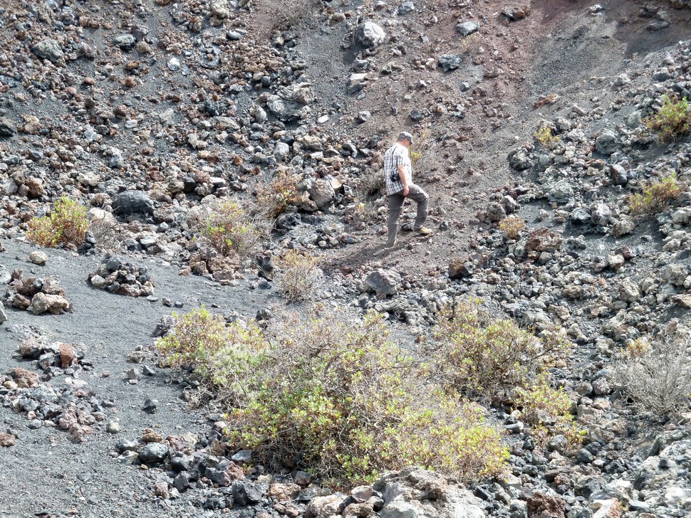 Manche mögens heiß, Michael prüft die Temperatur des Gesteins vom letzten Ausbruch 1971. Brände und Unwetter haben die Gegend um Fuencaliente ziemlich mitgenommen. El Faro, die Leuchttürme und die Salinen animieren zu vielen Fotos.