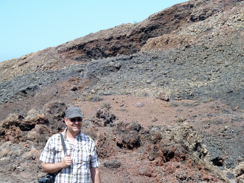 Manche mögens heiß, Michael prüft die Temperatur des Gesteins vom letzten Ausbruch 1971. Brände und Unwetter haben die Gegend um Fuencaliente ziemlich mitgenommen. El Faro, die Leuchttürme und die Salinen animieren zu vielen Fotos.