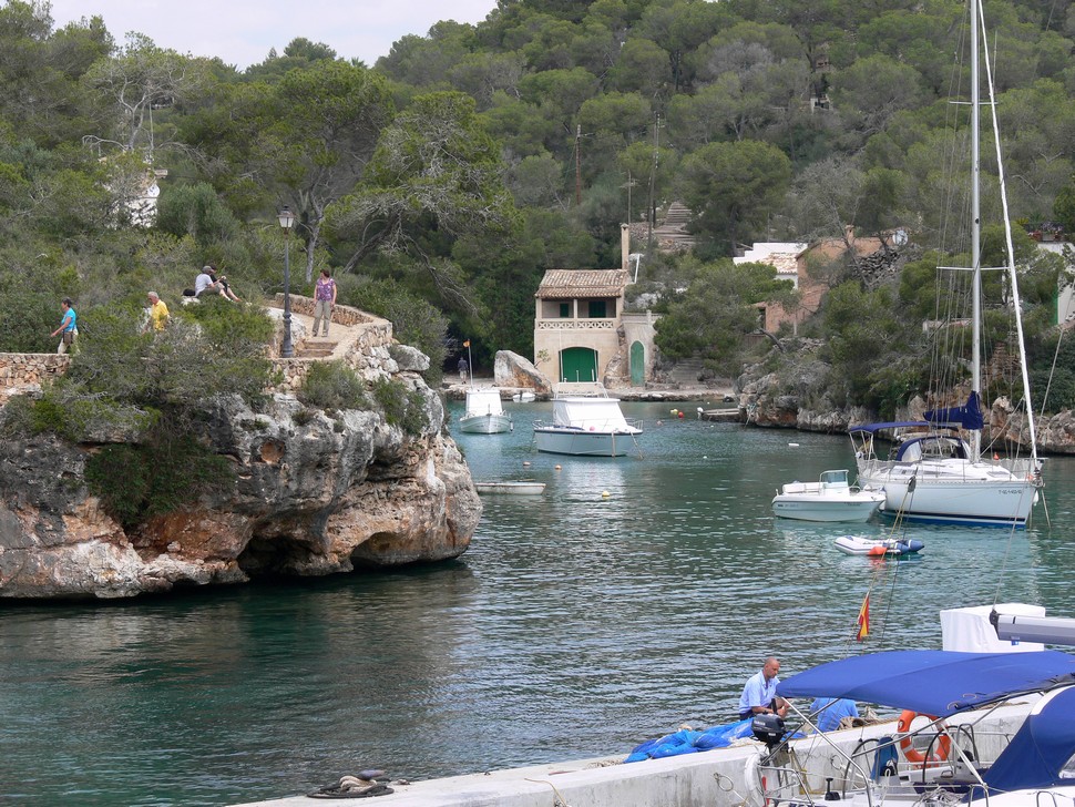Wir fahren am Donnerstag über Portocolom zu unserem Lieblingshafen Cala Figuera. Die Tore hinter denen sich zum Teil die Bootshäuser befinden, sind alle in einem einheitlichen Grün gestrichen, was einen farblich krassen Gegensatz zu den weißen und hellbraunen Häusern bildet. Das Hafenbecken selbst ist in U-Form angelegt und rundherum von den Bootshäusern und Fischerhütten umgeben. Man fühlt sich unversehens in eine unwirkliche Filmkulisse versetzt. |