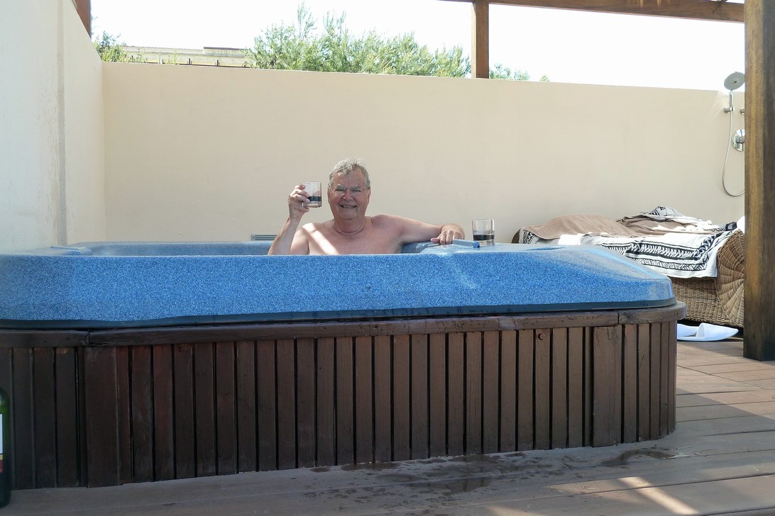 Unser Lieblingshotel auf Mallorca, sehr ruhig im Naturschutzgebiet gelegen genießen wir diemal die Dachterrasse mit Whirlpool, Balinesischer Liege und Couchgarnitur im Freien.