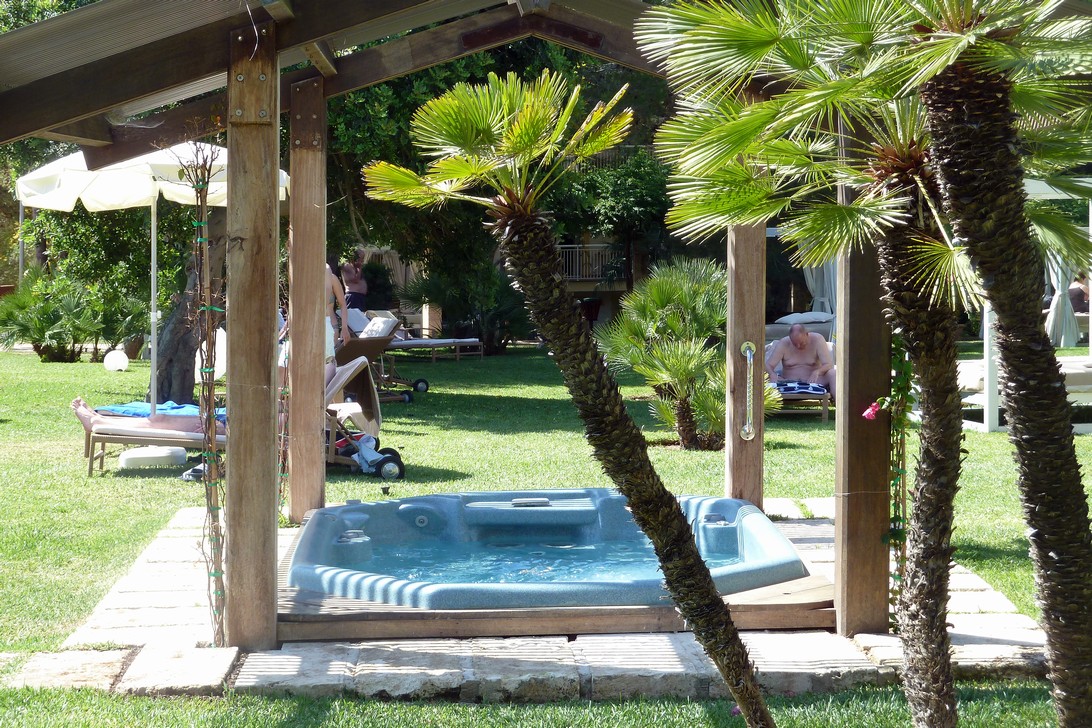 Unser Lieblingshotel auf Mallorca, sehr ruhig im Naturschutzgebiet gelegen genießen wir diemal die Dachterrasse mit Whirlpool, Balinesischer Liege und Couchgarnitur im Freien.