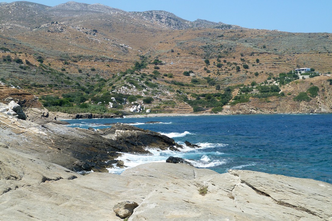 Wir fahren vom Westen ganz in den Norden von Naxos, vorbei an neuen und alten Windrädern kommen wir nach Koronos, wo wir aber wegen der Enge der Stasse nicht in den Ort einfahren, sondern von Skado aus den Ort begutachten. Dann gehts weiter nach Apollonas und an der Nordküste entlang wieder in den Westen an unseren Strand.