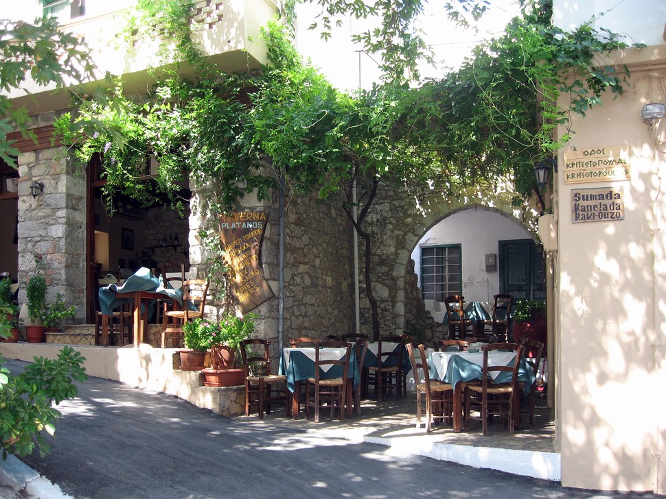 Wir besuchen die Kirche Panagia Kera mit den bedeutensten Fresken Kretas, dann weiter das filmreife Kritsa, direkt an den Berg geklebt. Das schöne Dorf mit seinen idyllischen Motiven hat es uns angetan. Die anschließende Fahrt auf die Hochebene war eine der kurvenreichsten unseres Aufenthaltes auf Kreta.