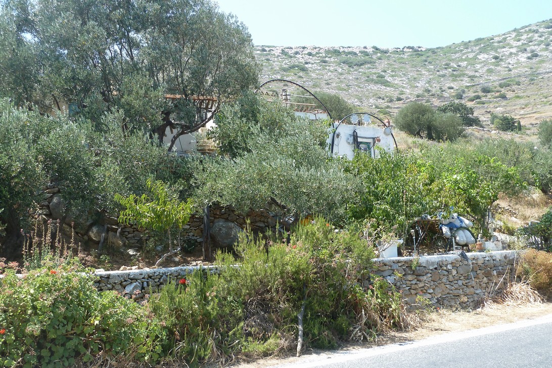 Auf dem Weg nach Lefkes kommen wir zuerst nach Kóstos mit einer herzlichen Begrüßung am Ortseingang und einer besonders schönen Platía mit Taverne. Lefkes das größte Binnendorf liegt an einem Hang mit engen Gässchen und der Hauptkirche Agia Triáda, Während vor 5 Jahren der linke Kirchturm restauriert wurde, ist es diesmal der rechte.
