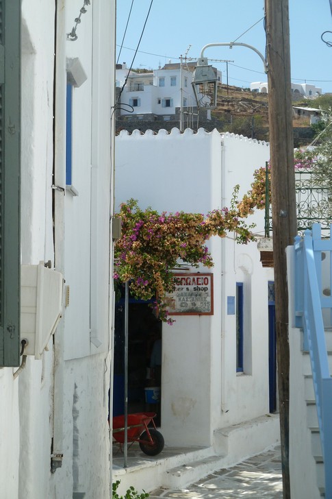Auf dem Weg nach Lefkes kommen wir zuerst nach Kóstos mit einer herzlichen Begrüßung am Ortseingang und einer besonders schönen Platía mit Taverne. Lefkes das größte Binnendorf liegt an einem Hang mit engen Gässchen und der Hauptkirche Agia Triáda, Während vor 5 Jahren der linke Kirchturm restauriert wurde, ist es diesmal der rechte.