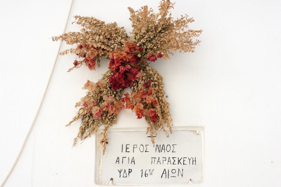 Auf dem Weg nach Lefkes kommen wir zuerst nach Kóstos mit einer herzlichen Begrüßung am Ortseingang und einer besonders schönen Platía mit Taverne. Lefkes das größte Binnendorf liegt an einem Hang mit engen Gässchen und der Hauptkirche Agia Triáda, Während vor 5 Jahren der linke Kirchturm restauriert wurde, ist es diesmal der rechte.