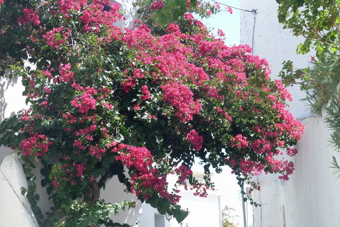 Auf dem Weg nach Lefkes kommen wir zuerst nach Kóstos mit einer herzlichen Begrüßung am Ortseingang und einer besonders schönen Platía mit Taverne. Lefkes das größte Binnendorf liegt an einem Hang mit engen Gässchen und der Hauptkirche Agia Triáda, Während vor 5 Jahren der linke Kirchturm restauriert wurde, ist es diesmal der rechte.