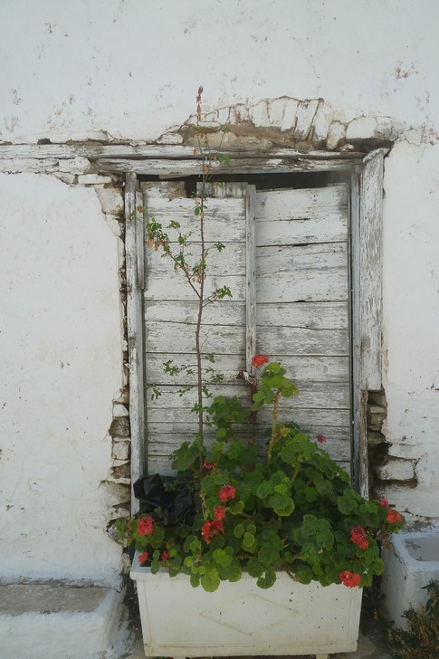 Auf dem Weg nach Lefkes kommen wir zuerst nach Kóstos mit einer herzlichen Begrüßung am Ortseingang und einer besonders schönen Platía mit Taverne. Lefkes das größte Binnendorf liegt an einem Hang mit engen Gässchen und der Hauptkirche Agia Triáda, Während vor 5 Jahren der linke Kirchturm restauriert wurde, ist es diesmal der rechte.
