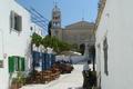 Auf dem Weg nach Lefkes kommen wir zuerst nach Kóstos mit einer herzlichen Begrüßung am Ortseingang und einer besonders schönen Platía mit Taverne. Lefkes das größte Binnendorf liegt an einem Hang mit engen Gässchen und der Hauptkirche Agia Triáda, Während vor 5 Jahren der linke Kirchturm restauriert wurde, ist es diesmal der rechte.