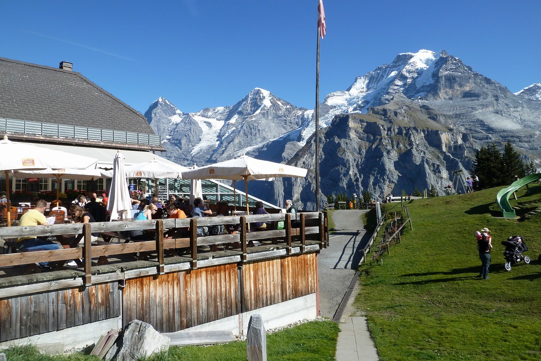 Wir checken kurz im Eiger-Guesthause ein und gleich gehts weiter mit der Zahnradbahn auf die Alm zur Jause. Dort hat man noch einen besseren Ausblick von über 1900m auf die Gipfel.