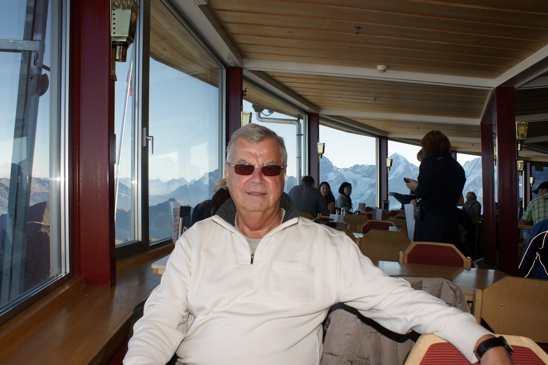 Um 8 Uhr morgens geht es schon zur Schilthornbahn, über Birg auf den Gipfel in fast 3.000 m Höhe. Auf den Spuren von 007 gibt es erst mal ein ausführliches James Bond Frühstück und wir genießen stundenlang den tollen Ausblick auf die 1.000 Gipfel aus dem Drehrestaurant.