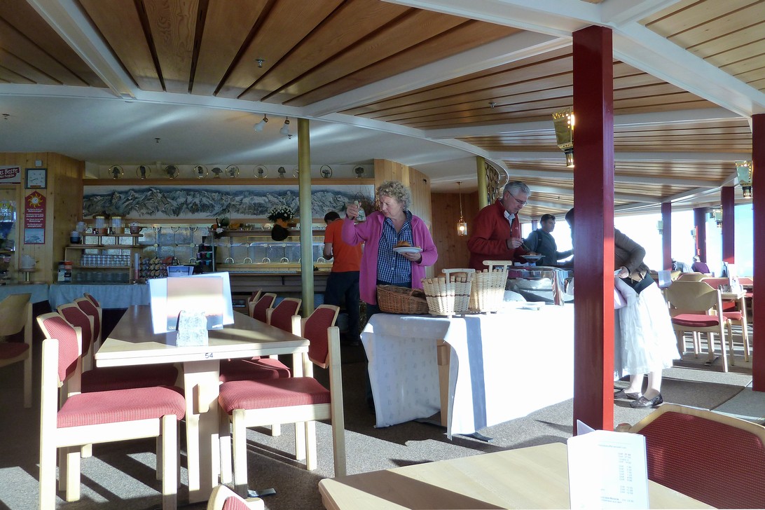 Um 8 Uhr morgens geht es schon zur Schilthornbahn, über Birg auf den Gipfel in fast 3.000 m Höhe. Auf den Spuren von 007 gibt es erst mal ein ausführliches James Bond Frühstück und wir genießen stundenlang den tollen Ausblick auf die 1.000 Gipfel aus dem Drehrestaurant.