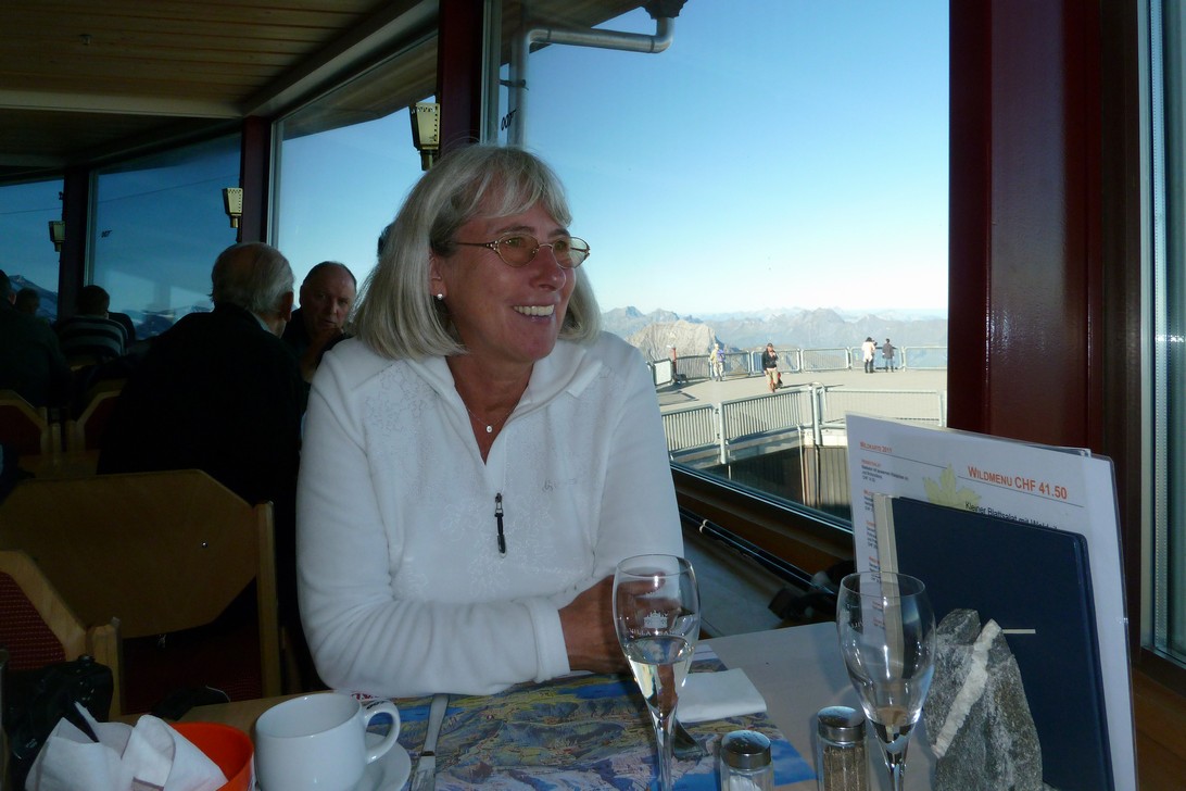 Um 8 Uhr morgens geht es schon zur Schilthornbahn, über Birg auf den Gipfel in fast 3.000 m Höhe. Auf den Spuren von 007 gibt es erst mal ein ausführliches James Bond Frühstück und wir genießen stundenlang den tollen Ausblick auf die 1.000 Gipfel aus dem Drehrestaurant.