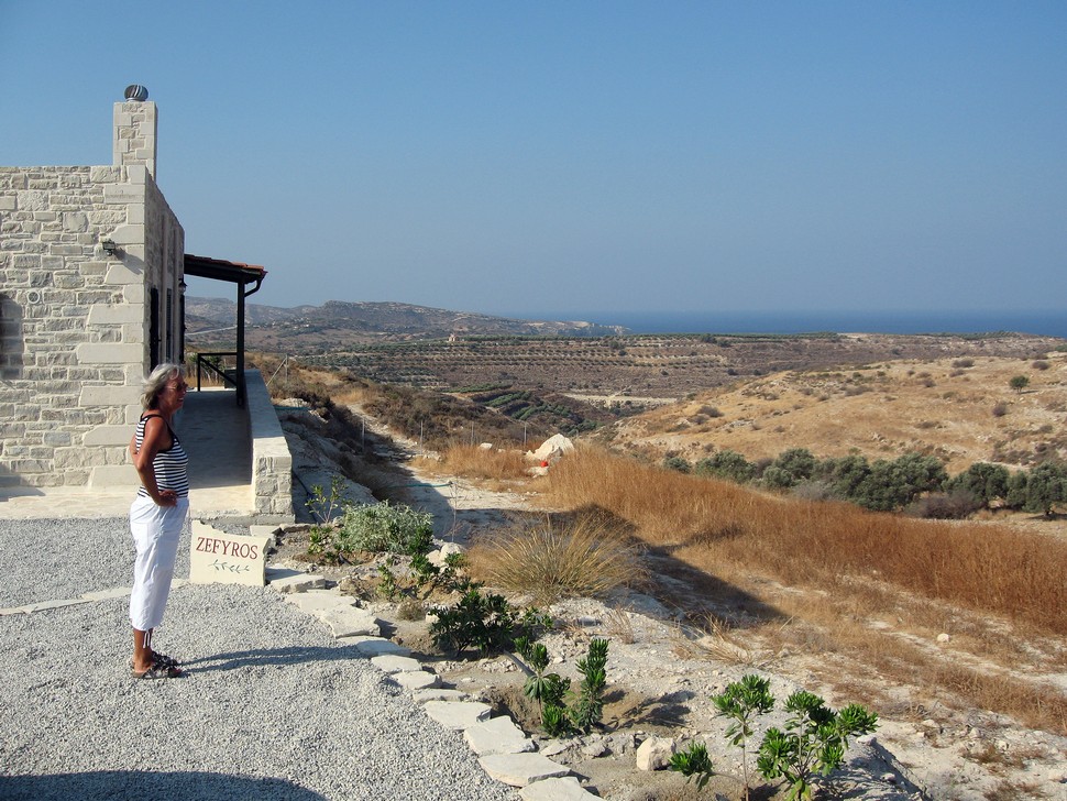 Kamilari unser Domizil im Süden liegt idyllisch auf einem Hügel und bietet alles was wir brauchen, 2 Minimärkte und Tavernen, ganz in der Nähe den 2,5 km langen Komosstrand, wo die Meeresschildkröten ihre Eier ablegen und der Hit unsere Natursteinvilla Zefyros in absoluter Ruhe auf einer Anhöhe gelegen. Wir werden von Vogelgezwitscher und Zikaden geweckt, erfrischen uns im Pool und frühstücken gemütlich auf der Terrasse.