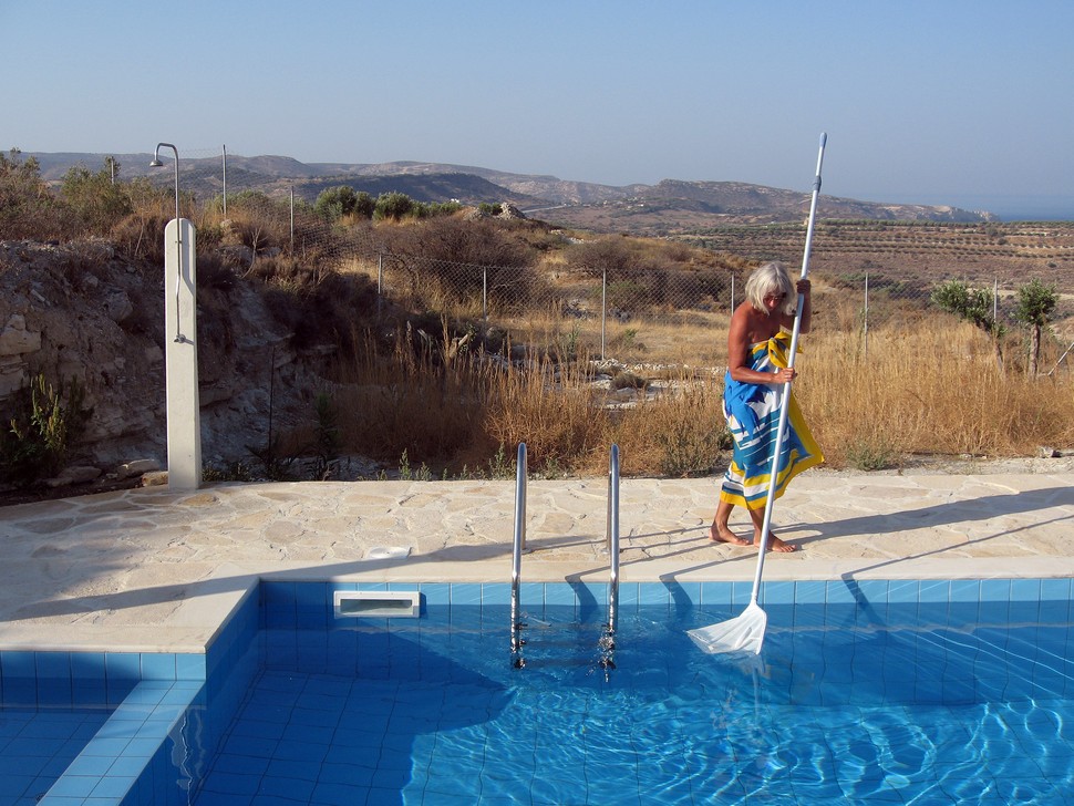 Kamilari unser Domizil im Süden liegt idyllisch auf einem Hügel und bietet alles was wir brauchen, 2 Minimärkte und Tavernen, ganz in der Nähe den 2,5 km langen Komosstrand, wo die Meeresschildkröten ihre Eier ablegen und der Hit unsere Natursteinvilla Zefyros in absoluter Ruhe auf einer Anhöhe gelegen. Wir werden von Vogelgezwitscher und Zikaden geweckt, erfrischen uns im Pool und frühstücken gemütlich auf der Terrasse.