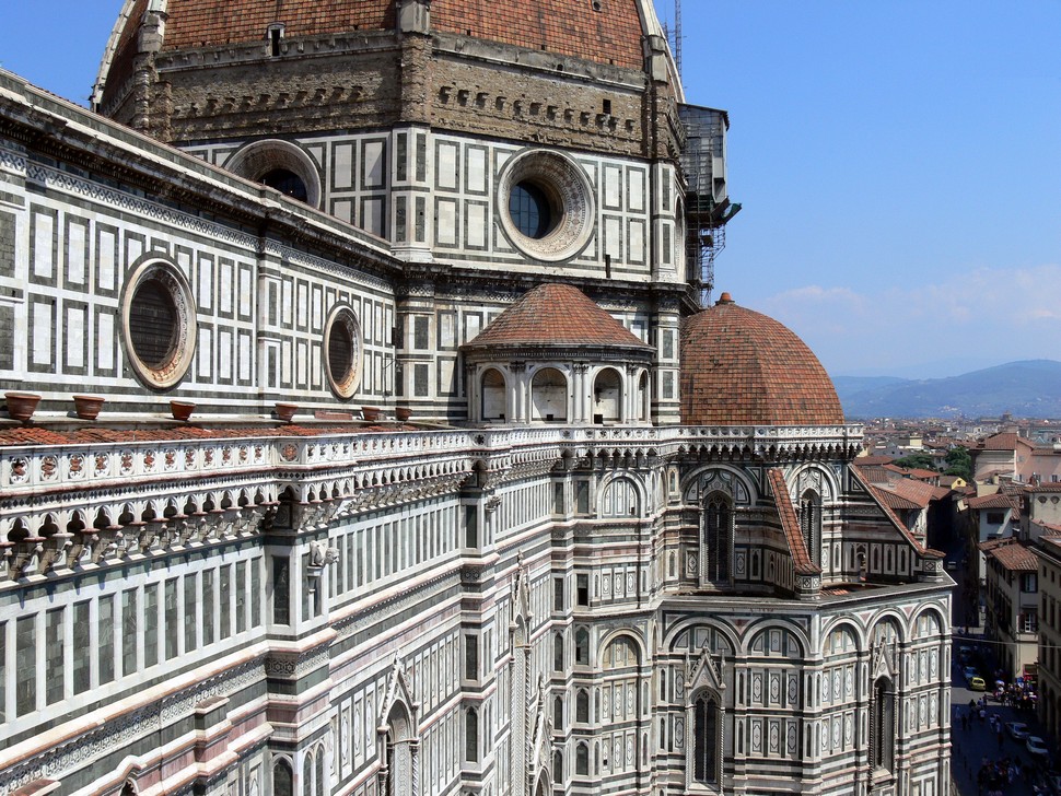 Wir lassen uns zum Piazzale Michelangelo führen, um denn herrlichen Ausblick auf die ganze Stadt zu genießen, ehe wir uns durch die Menschenmassen uber den Ponte Vecchio quälen. Wir kommen vorbei an den Uffizien, davor riesige Menschenschlangen, die Eintrittakarten kaufen wollen, weiter gehts zum Neptunbrunnen ehe wir dann an unserem Ziel, dem Dom, ankommen.