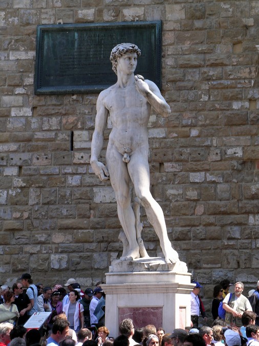 Wir lassen uns zum Piazzale Michelangelo führen, um denn herrlichen Ausblick auf die ganze Stadt zu genießen, ehe wir uns durch die Menschenmassen uber den Ponte Vecchio quälen. Wir kommen vorbei an den Uffizien, davor riesige Menschenschlangen, die Eintrittakarten kaufen wollen, weiter gehts zum Neptunbrunnen ehe wir dann an unserem Ziel, dem Dom, ankommen.
