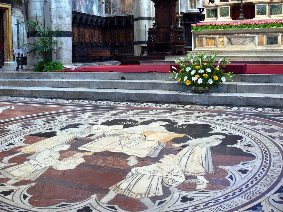 Von der Via Roma über die Plazza del Campo zum Dom, unser Spaziergang ging auch in schwindelnde Höhen, von wo wir aber einen fantastischen Blick über die Stadt bis hin zur Mondlanschaft Crete hatten. Der Dom Santa Maria Assunta thront über der Stadt und hat uns mit seiner Pracht gerade zu überwältigt.
