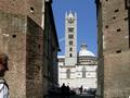 Von der Via Roma über die Plazza del Campo zum Dom, unser Spaziergang ging auch in schwindelnde Höhen, von wo wir aber einen fantastischen Blick über die Stadt bis hin zur Mondlanschaft Crete hatten. Der Dom Santa Maria Assunta thront über der Stadt und hat uns mit seiner Pracht gerade zu überwältigt.