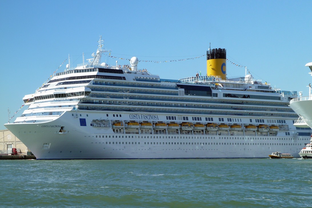 Mit dem Vaporetto fahren wir rund um den Hafen und sehen dabei eine tolle Kreuzfahrtschiffparade. Die einzelnen Kreuzfahrtschiffe zeigen sich dabei von allen Seiten in Ihrer ganzen Pracht. Unser Schiff war natürlich nicht,dabei, zu diesem Zeitpunkt lag es in Izmir im Hafen.