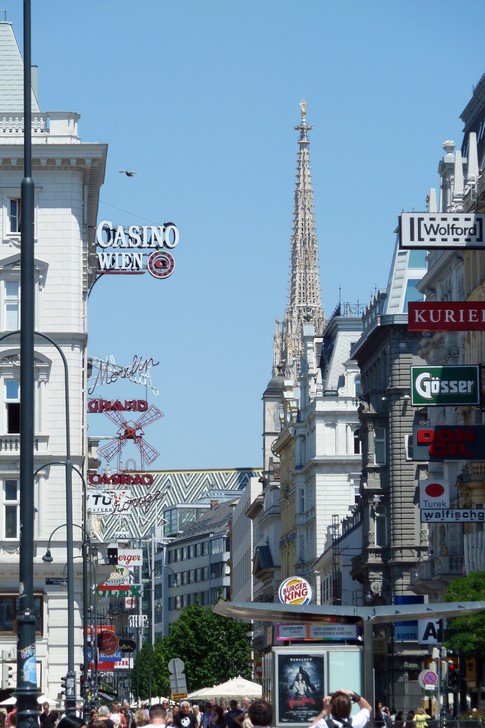 Unser Hotel ist das Radisson Blu Palais Hotel am Stubenring. Von dort aus laufen wir an der Oper vorbei zum Hotel Sacher, weiter zur Albertina. An der Reiss-Bar stärken wir uns mit einem Glas Champagner und kommen dann zum Haas-Haus am Stephansdom. Über den Graben gehts zur Michaelakirche, Hofburg in den Stadtgarten bis zum Burgtheater, dann ins Schmetterlingshaus an der Orangerie.