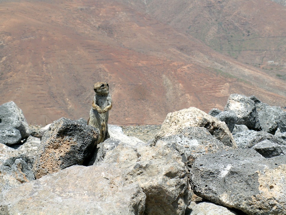 Genau an der Gebietsgrenze zwischen Betancuria und Pajara entdecken wir putzige, gefräßige und handzahme Streifenhörnchen. Zum glück haben wir Ernüsse im Auto. Der Ort hat einen kleinen schwarzsandigen Strand mit dem schaurigen Namen 'Playa de los Muertos'. Von der rechten Seite des Strandes führt ein Weg entlang der felsigen Küste zu den Höhlen von Ajuy. Diese erreicht man über einige Stufen. Die zwei Höhlen sind recht geräumig.
