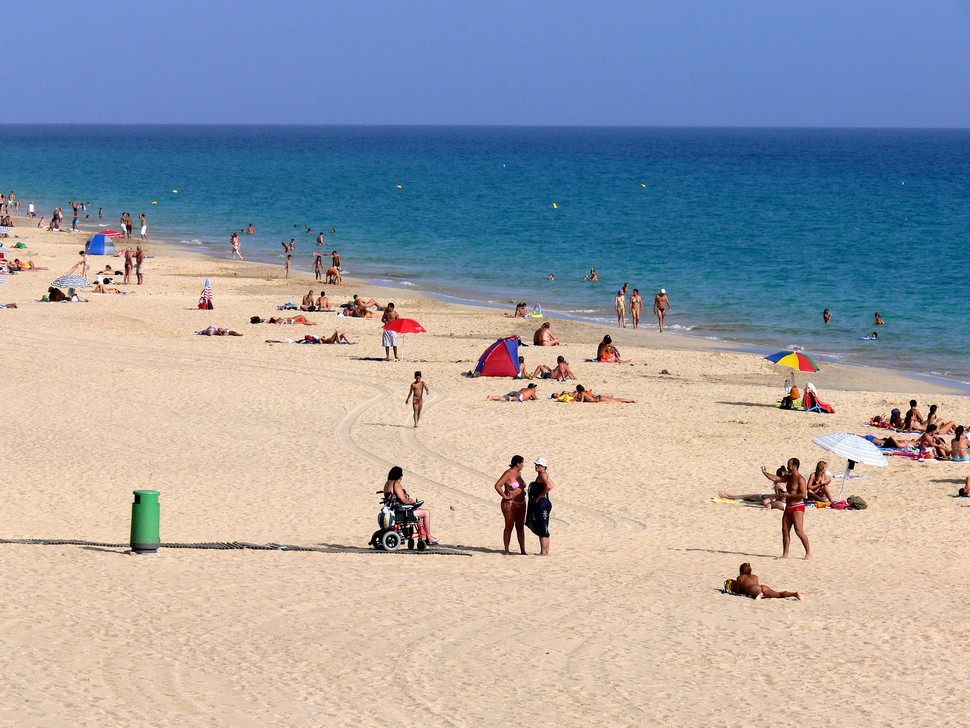 Touristisch voll erschlossen ist der südliche Teil von Jandia, wir wohnen im RIU Palace El Palacete, grandios gelegen, direkt über dem Strand mit einer tollen Aussicht, Superservice und sehr ruhig mit lediglich 50 Zimmern. Direkt vor dem RIU Calypso gelegen konnte man dort alle Einrichtungen eines großen Hotels benutzen. Wir baden hier in der Nähe des Leuchtturms.