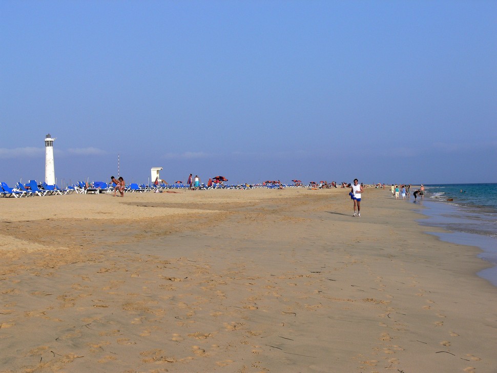 Touristisch voll erschlossen ist der südliche Teil von Jandia, wir wohnen im RIU Palace El Palacete, grandios gelegen, direkt über dem Strand mit einer tollen Aussicht, Superservice und sehr ruhig mit lediglich 50 Zimmern. Direkt vor dem RIU Calypso gelegen konnte man dort alle Einrichtungen eines großen Hotels benutzen. Wir baden hier in der Nähe des Leuchtturms.