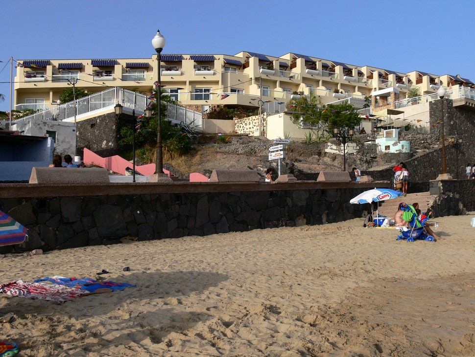 Touristisch voll erschlossen ist der südliche Teil von Jandia, wir wohnen im RIU Palace El Palacete, grandios gelegen, direkt über dem Strand mit einer tollen Aussicht, Superservice und sehr ruhig mit lediglich 50 Zimmern. Direkt vor dem RIU Calypso gelegen konnte man dort alle Einrichtungen eines großen Hotels benutzen. Wir baden hier in der Nähe des Leuchtturms. |