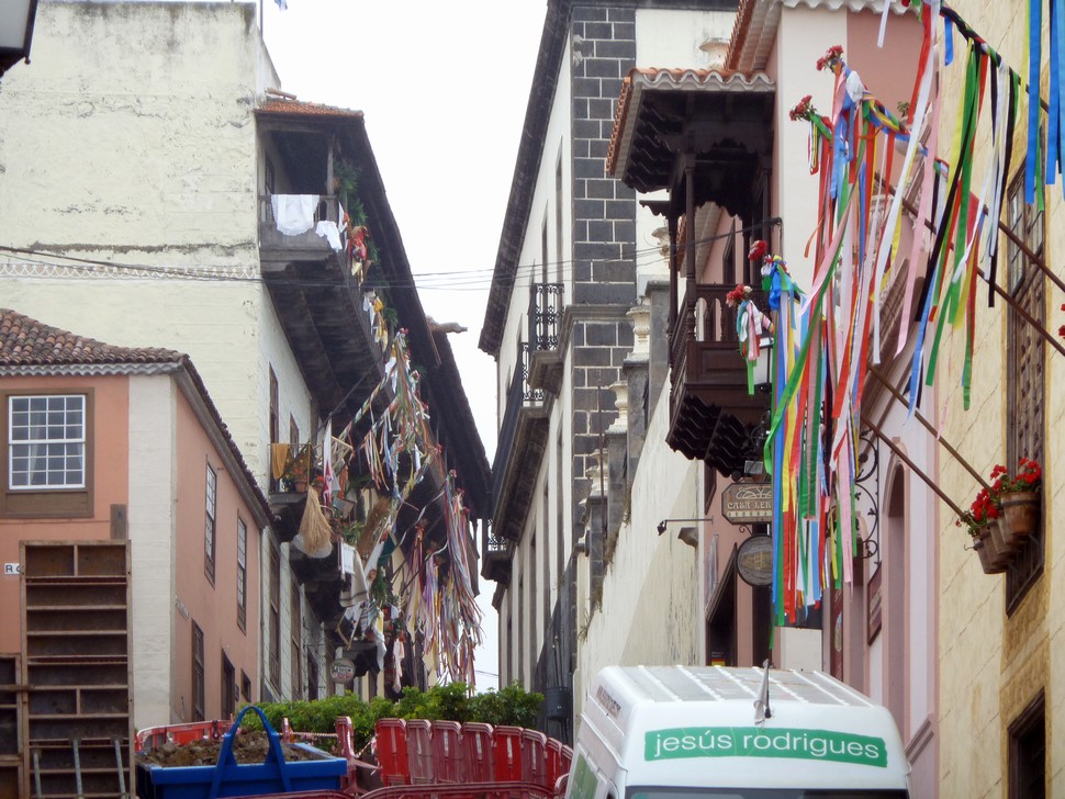 Aber auch auf dem Weg dahin müeeten wir uns durch Pasatwolken kämpfen. dDe Plaza steht im Mittelpunkt des Lebens in La Orotava. Vor Fronleichnam gestalten ortsansässige Künstler aus feingemahlenem vielfarbigen Vulkangestein aus den Canadas einen farbenfrohen Bilderteppich. Mit viel Phantasie und Können werden Szenen aus dem Testament umrahmt von bunten Blüten, Schmetterlingen und Mustern dargestellt.