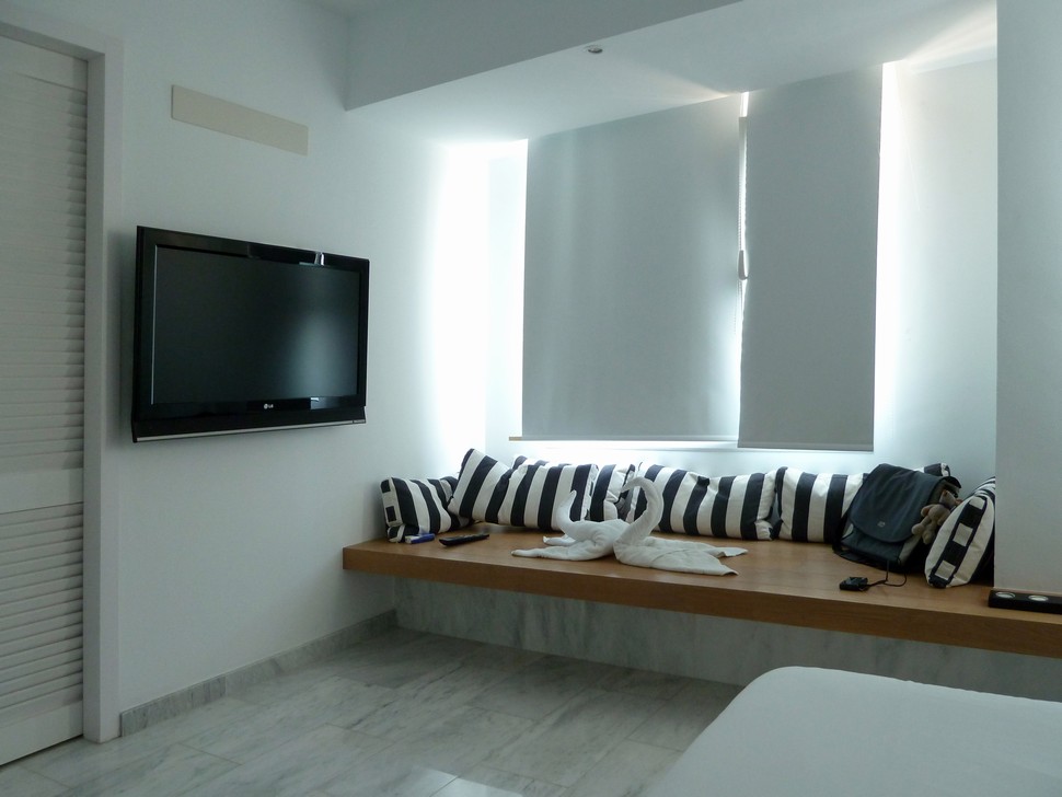 Wir wohnen in der einzigen Penthouse-Villa in einer 4-zeiligen 1km breiten Appartementanlage am Hang gebaut und sind begeistert vom Design der Villa, ganz in weiss und mit weißem Marmor gefliest.