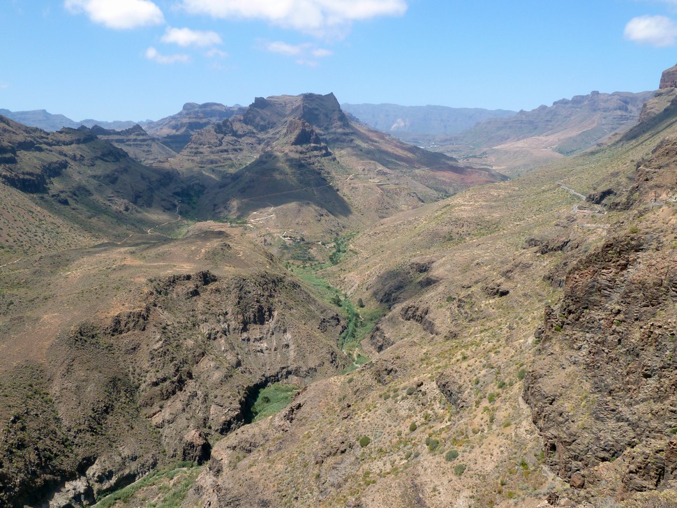 Unsere Fahrt geht über Mogán, wir bewundern die alte Windmühle, hinein in die grandiose Bergwelt, vorbei an Risco Grande über viele Serpentinen nach Ayacata, Vom beschriebenen Parkplatz wandern wir zum Roque Nublo. Über San Bartolomé geht es zurück nach Maspalomas in die Dünen.