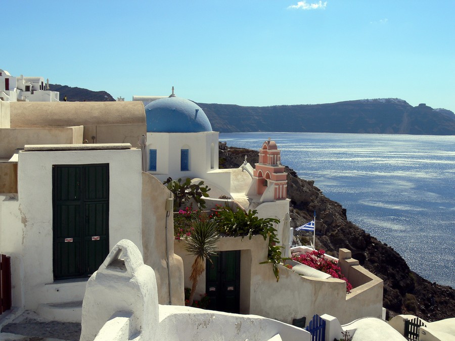 Oía ist wohl der spektakulärste Ort auf den Kykladen, an der Nordspitze Santorínis gelegen wurde er durch ein verheerendes Erdbeben 1956 total zerstört. Die Häuser und Kirchen hängen am Kraterrand, ein faszinierendes Labyrinth von Treppengässche, Kirchenkuppeln und dazwischen Höhlenwohnungen. So weltberühmt der Sonnenuntergang dort ist, herrscht jeden Abend ein Riesengedränge, denn jeder möchte den besten Ausblick haben.