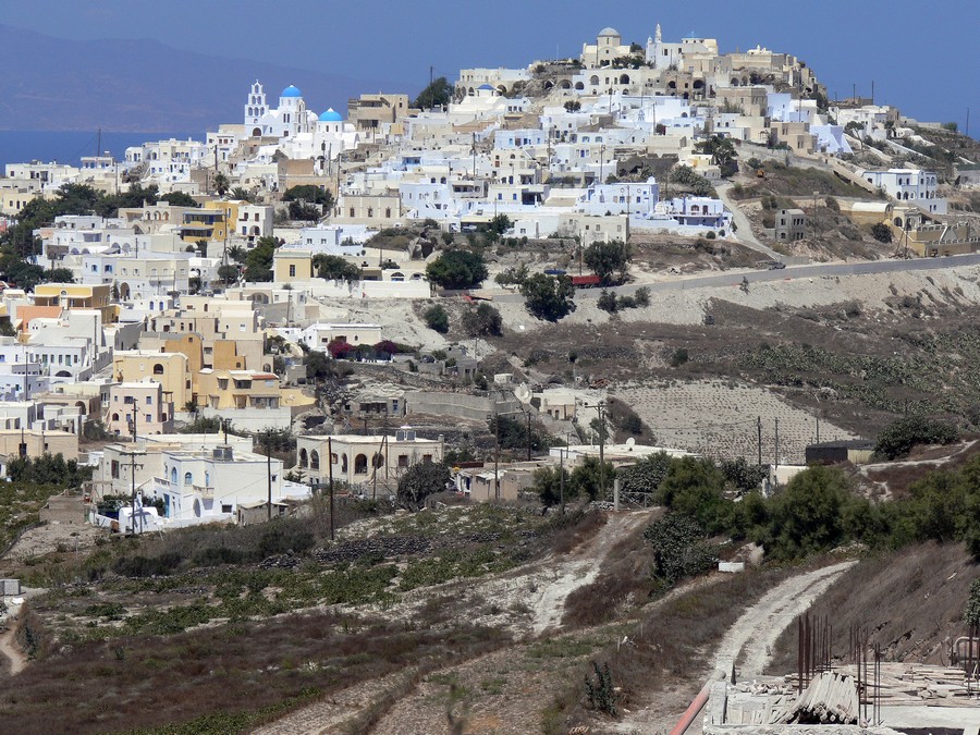 Pýrgos war die Hauptstadt zu Zeiten der Piratengefahr, nicht zuletzt wegen des grandiosen Ausblicks über die ganze Insel vom Kástro aus. Es wird auch als Penthouse der Insel bezeichnet, extrem verwinkelt, mit Treppen, Gassen und Kirchen. In Vlicháda an der südlichsten Spitze Santorínis waren wir meist baden, gewohnt haben wir im Hotel Zéphyros in Kamári.