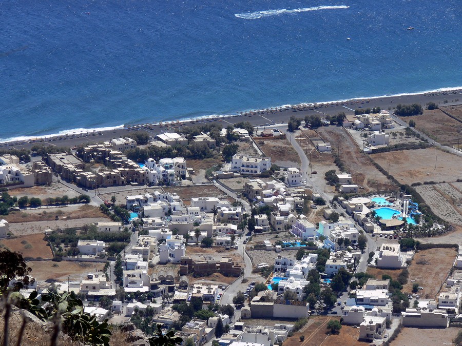 Pýrgos war die Hauptstadt zu Zeiten der Piratengefahr, nicht zuletzt wegen des grandiosen Ausblicks über die ganze Insel vom Kástro aus. Es wird auch als Penthouse der Insel bezeichnet, extrem verwinkelt, mit Treppen, Gassen und Kirchen. In Vlicháda an der südlichsten Spitze Santorínis waren wir meist baden, gewohnt haben wir im Hotel Zéphyros in Kamári.