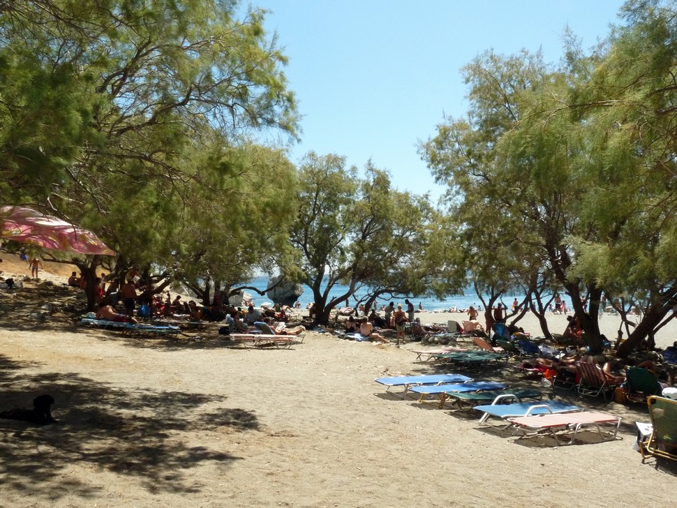 Mit dem Auto gehts zum Hafen nach Agia Galini, von dort mit dem Boot Argonautes an der Küste entlang zum Palmenstrand Preveli.Die letzte halbe Stunde wurde das Meer ganz schön unruhig und wir wurden naß gespritz tund mußten nach innen flüchten. Am Beach angekommen wandern wir entlang des Flusses durch Palmenwälder,über Stock und Stein, klettern über Felsen bis die hohen Berge beginnen.