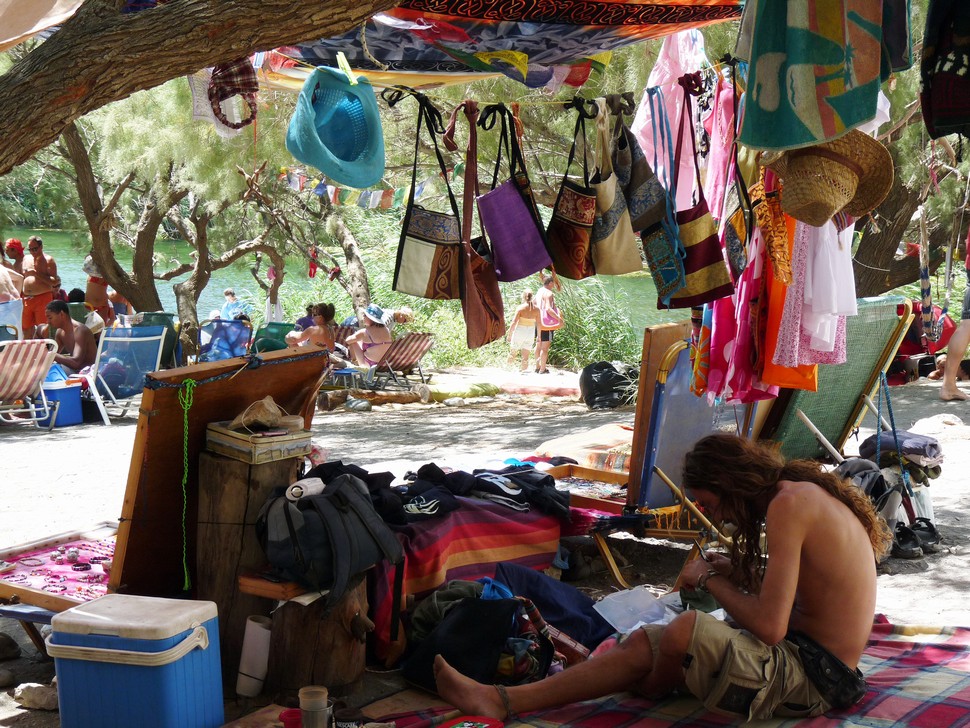 Mit dem Auto gehts zum Hafen nach Agia Galini, von dort mit dem Boot Argonautes an der Küste entlang zum Palmenstrand Preveli.Die letzte halbe Stunde wurde das Meer ganz schön unruhig und wir wurden naß gespritz tund mußten nach innen flüchten. Am Beach angekommen wandern wir entlang des Flusses durch Palmenwälder,über Stock und Stein, klettern über Felsen bis die hohen Berge beginnen.