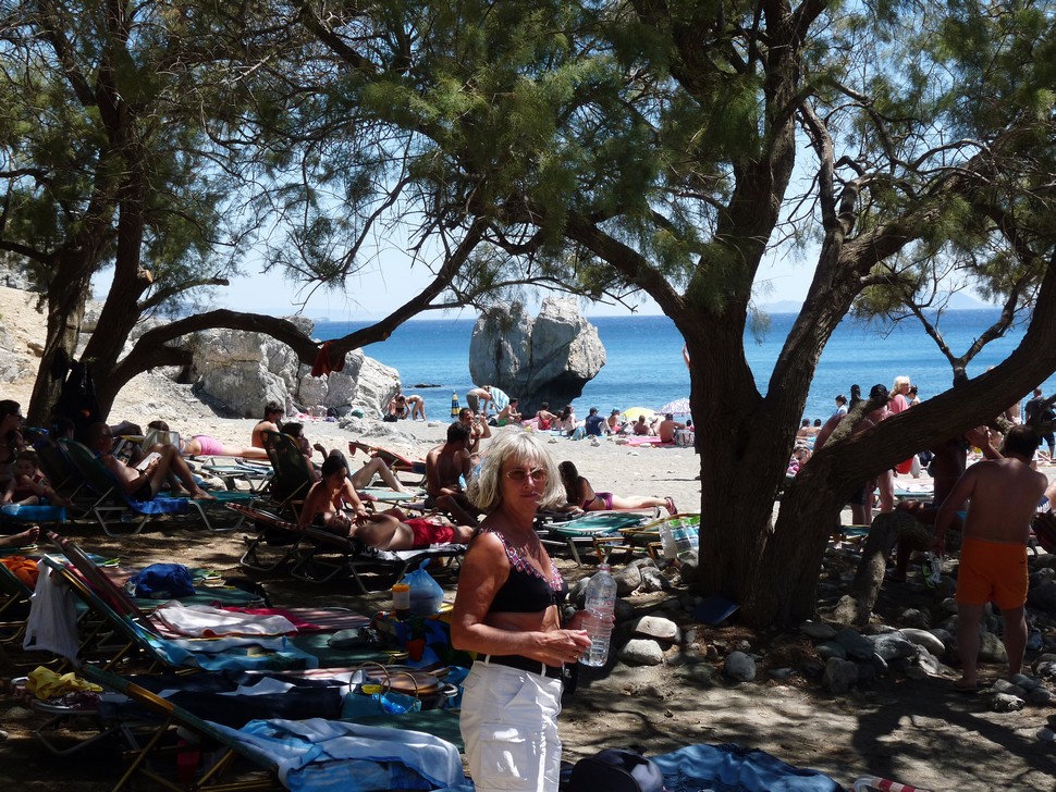 Mit dem Auto gehts zum Hafen nach Agia Galini, von dort mit dem Boot Argonautes an der Küste entlang zum Palmenstrand Preveli.Die letzte halbe Stunde wurde das Meer ganz schön unruhig und wir wurden naß gespritz tund mußten nach innen flüchten. Am Beach angekommen wandern wir entlang des Flusses durch Palmenwälder,über Stock und Stein, klettern über Felsen bis die hohen Berge beginnen.