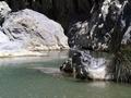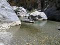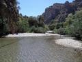 Mit dem Auto gehts zum Hafen nach Agia Galini, von dort mit dem Boot Argonautes an der Küste entlang zum Palmenstrand Preveli.Die letzte halbe Stunde wurde das Meer ganz schön unruhig und wir wurden naß gespritz tund mußten nach innen flüchten. Am Beach angekommen wandern wir entlang des Flusses durch Palmenwälder,über Stock und Stein, klettern über Felsen bis die hohen Berge beginnen.