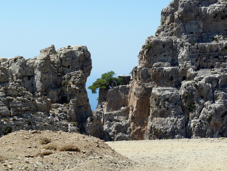 Diesmal klappt es und wir fahren die asphaltierte Straße hoch ins Gebirge auf über 1000m und finden Kapetaniana. Neo oder Kato war die Frage, in Kato schickte man uns nach Neo und von nun an gings bergab über ungesicherte Schotterwege. Waltraud war ganz ruhig geworden. Trotzdem eine tolle Fahrt entlang der Felsen. In Agios Ioanis finden wir schöne Buchten und eine urige Taverne.