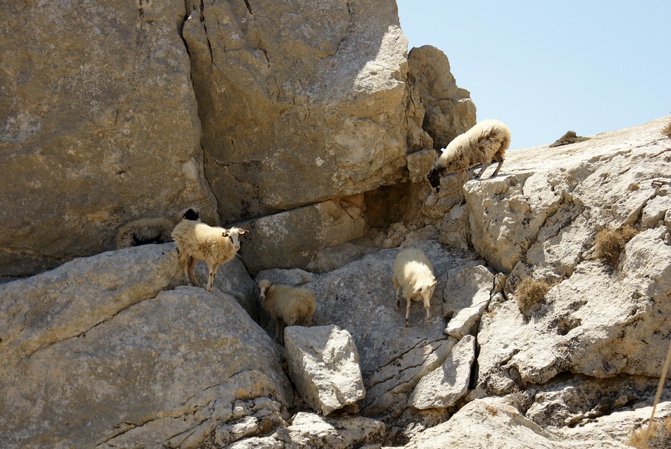 Diesmal klappt es und wir fahren die asphaltierte Straße hoch ins Gebirge auf über 1000m und finden Kapetaniana. Neo oder Kato war die Frage, in Kato schickte man uns nach Neo und von nun an gings bergab über ungesicherte Schotterwege. Waltraud war ganz ruhig geworden. Trotzdem eine tolle Fahrt entlang der Felsen. In Agios Ioanis finden wir schöne Buchten und eine urige Taverne.