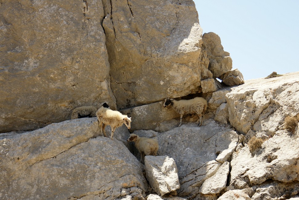 Diesmal klappt es und wir fahren die asphaltierte Straße hoch ins Gebirge auf über 1000m und finden Kapetaniana. Neo oder Kato war die Frage, in Kato schickte man uns nach Neo und von nun an gings bergab über ungesicherte Schotterwege. Waltraud war ganz ruhig geworden. Trotzdem eine tolle Fahrt entlang der Felsen. In Agios Ioanis finden wir schöne Buchten und eine urige Taverne.
