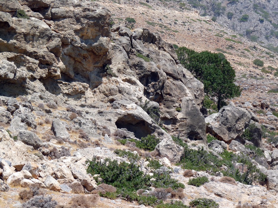Diesmal klappt es und wir fahren die asphaltierte Straße hoch ins Gebirge auf über 1000m und finden Kapetaniana. Neo oder Kato war die Frage, in Kato schickte man uns nach Neo und von nun an gings bergab über ungesicherte Schotterwege. Waltraud war ganz ruhig geworden. Trotzdem eine tolle Fahrt entlang der Felsen. In Agios Ioanis finden wir schöne Buchten und eine urige Taverne.