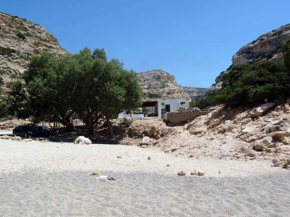 Heute fahren wir über Moni Odigitrias, wo wir den Mönchen eine CD mit unseren Bildern vom vergangenen Jahr übergeben und von denen wir wie jedes mal freundlich empfangen werden, auf Schotterstraßen vorbei an vielen Ziegen und Schafen Richtung Martsalo vorbei am Berg Kefali zur wunderschönen Bucht Vathi. Gewaltige Kreidefelsen säumen die Schotterstrasse.