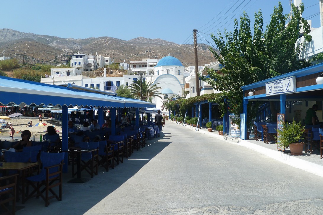 Wir fahren vom Westen ganz in den Norden von Naxos, vorbei an neuen und alten Windrädern kommen wir nach Koronos, wo wir aber wegen der Enge der Stasse nicht in den Ort einfahren, sondern von Skado aus den Ort begutachten. Dann gehts weiter nach Apollonas und an der Nordküste entlang wieder in den Westen an unseren Strand.